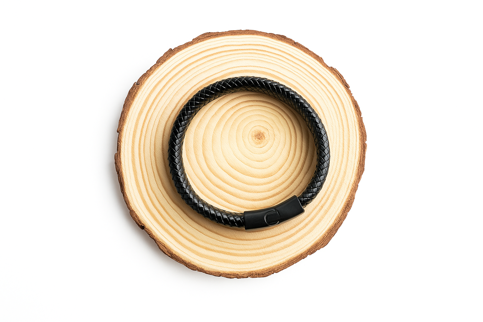 Pulsera cuero trenzada con cierre magnético 21 cm